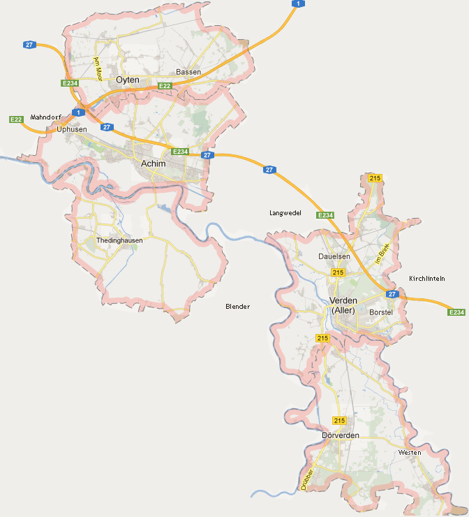 Die Karte zeigt das Einzugsgebiet der Arbeiterwohlfahrt im Kreisverband Verden. Beim Klicken auf die Ortsvereine auf der linken Seite erhalten Sie nähere Informationen und Ihren Ansprechpartner zum jeweilgen Ortsverein.